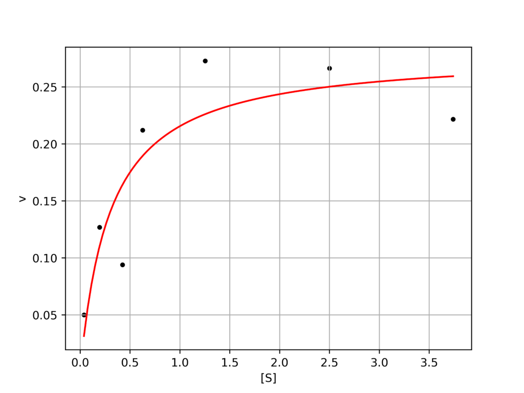 $v = \frac{V_{max}[S]}{K_M+[S]}$