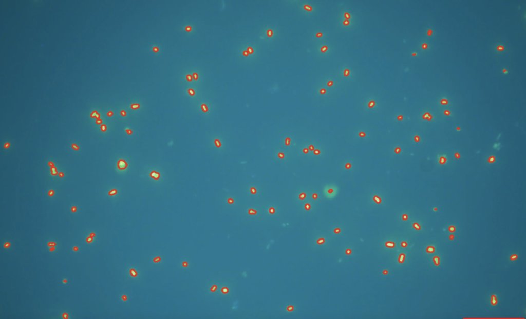 変数contoursの長さが輪郭の数(細胞数)に相当するので、len(contours)を取り出します。