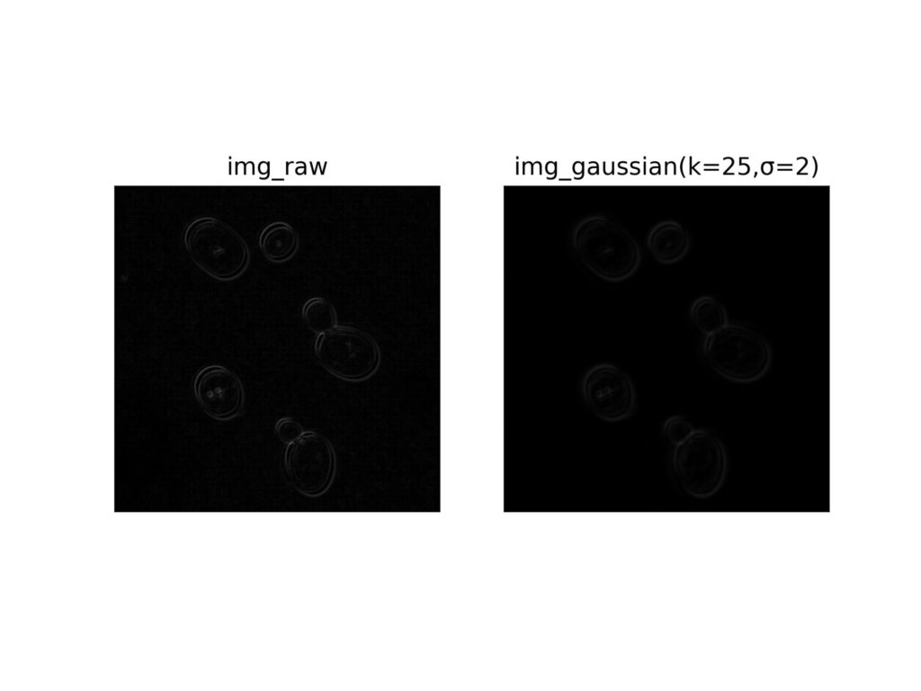 以下の記事で紹介したように、二次元ガウス分布による重み付けを利用した平滑化を行うことで、エッジがより際立つことがあります。