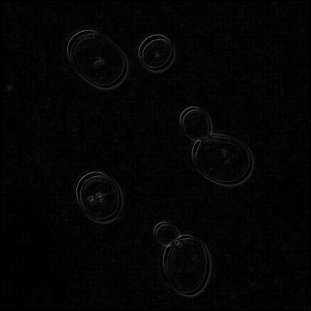 上記で得た縦横二種類の一次微分フィルタ処理後の画像を一枚に統合します。