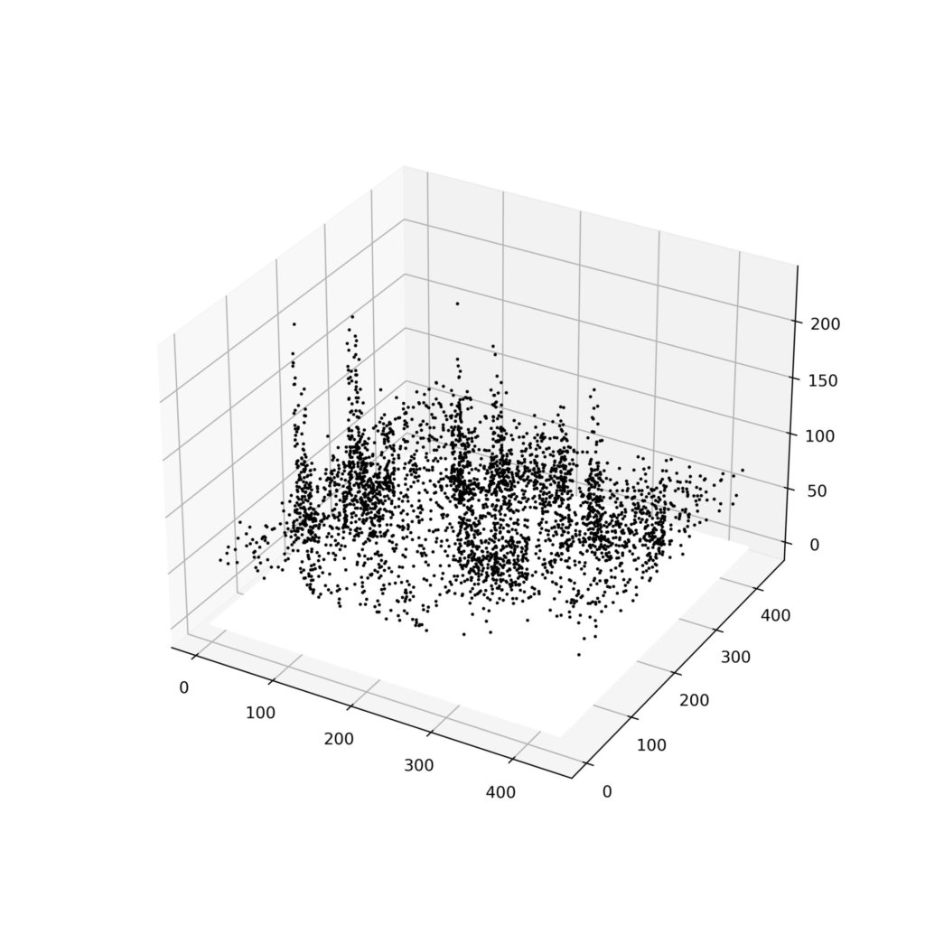 上記で作成した断面図はそのほかに画像配列の行の数だけ存在することになります。