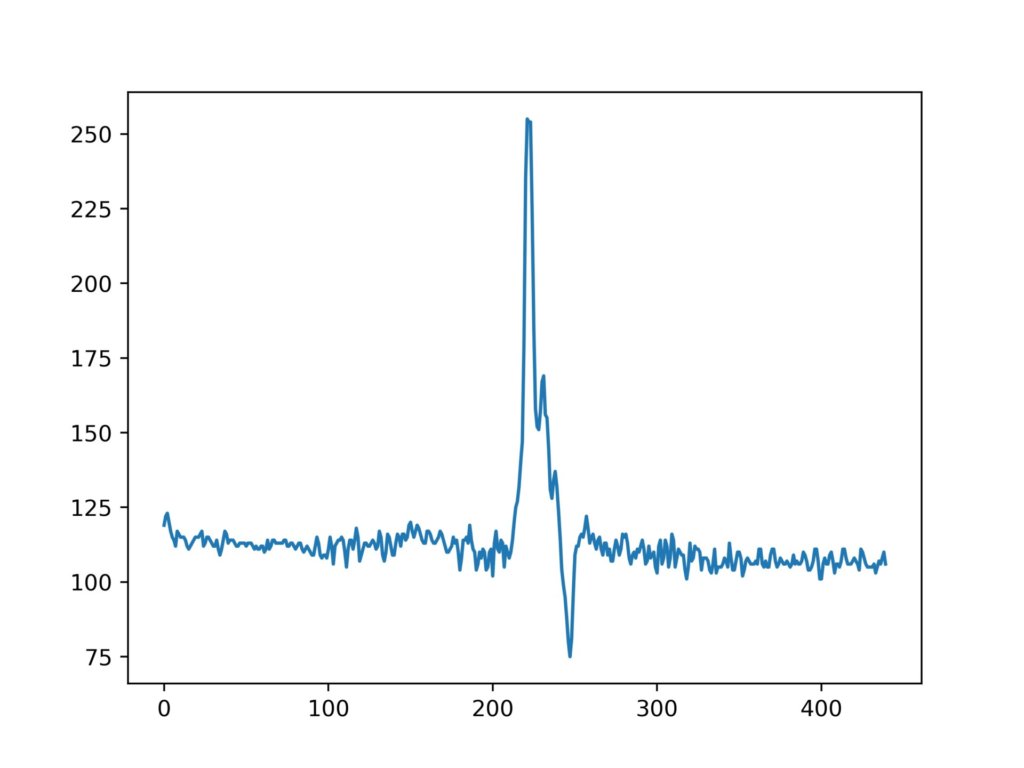 画像を行列に変換できたので、特定の行や列を指定するとその断面図を見ることができます。