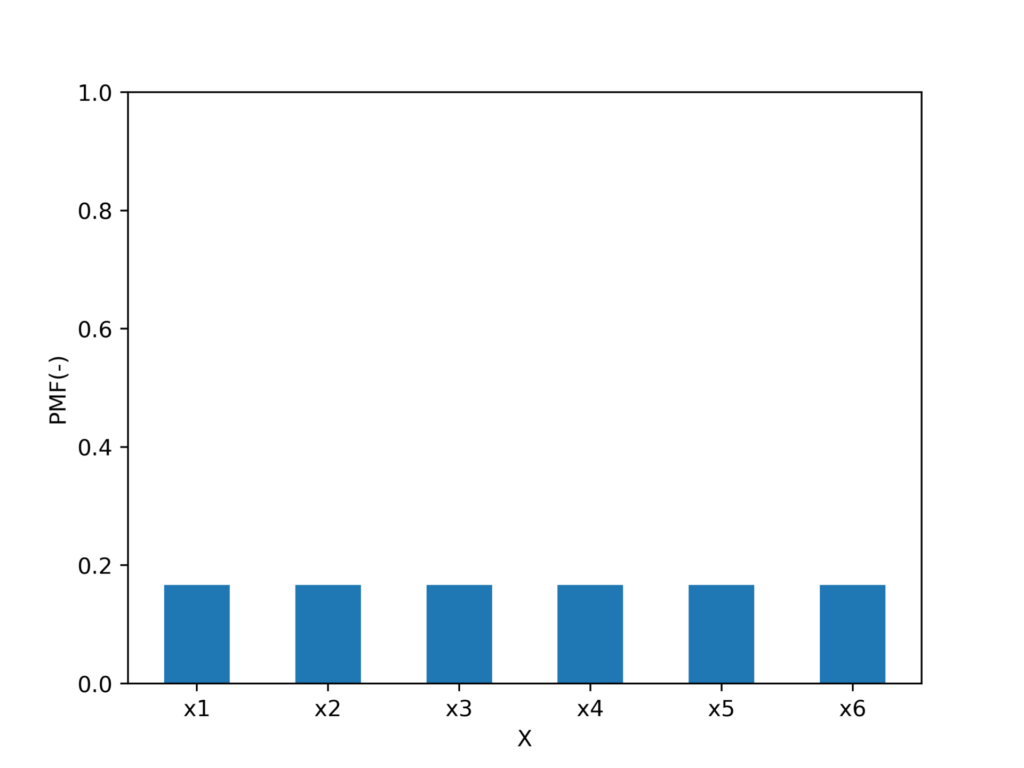 例えば、サイコロの目が1(x1)である確率をPとすれば、