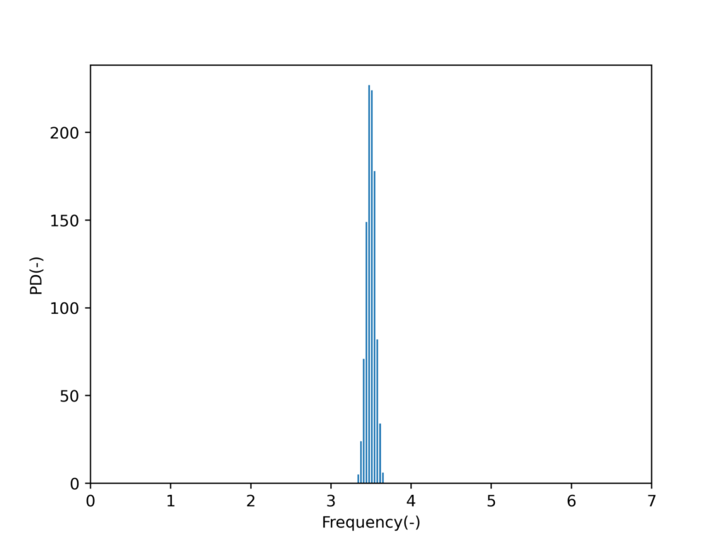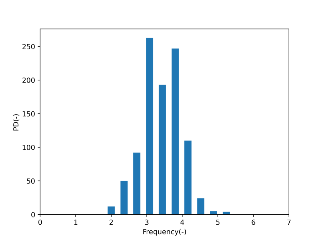 以下の様にpythonで実装し、ヒストグラムを出力します。