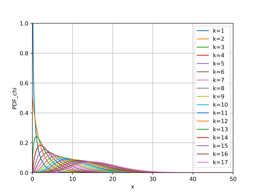 pythoを使用してカイ二乗分布をプロットしてみます。