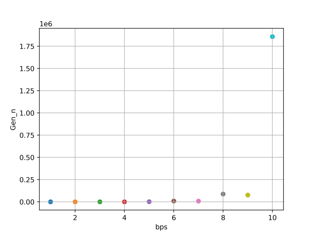 今回は、そんな一段階淘汰と累積淘汰によるターゲット塩基配列の生成コストを検証してみます。