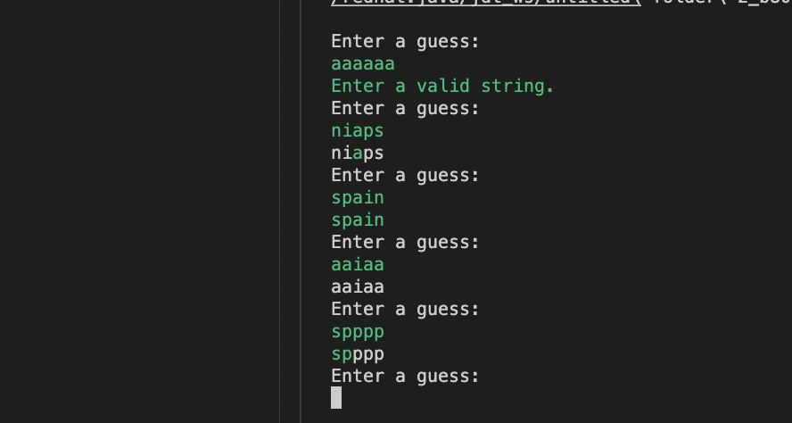 これを使って、ターミナルで実行できるwordleのようなものを作成してみました。
