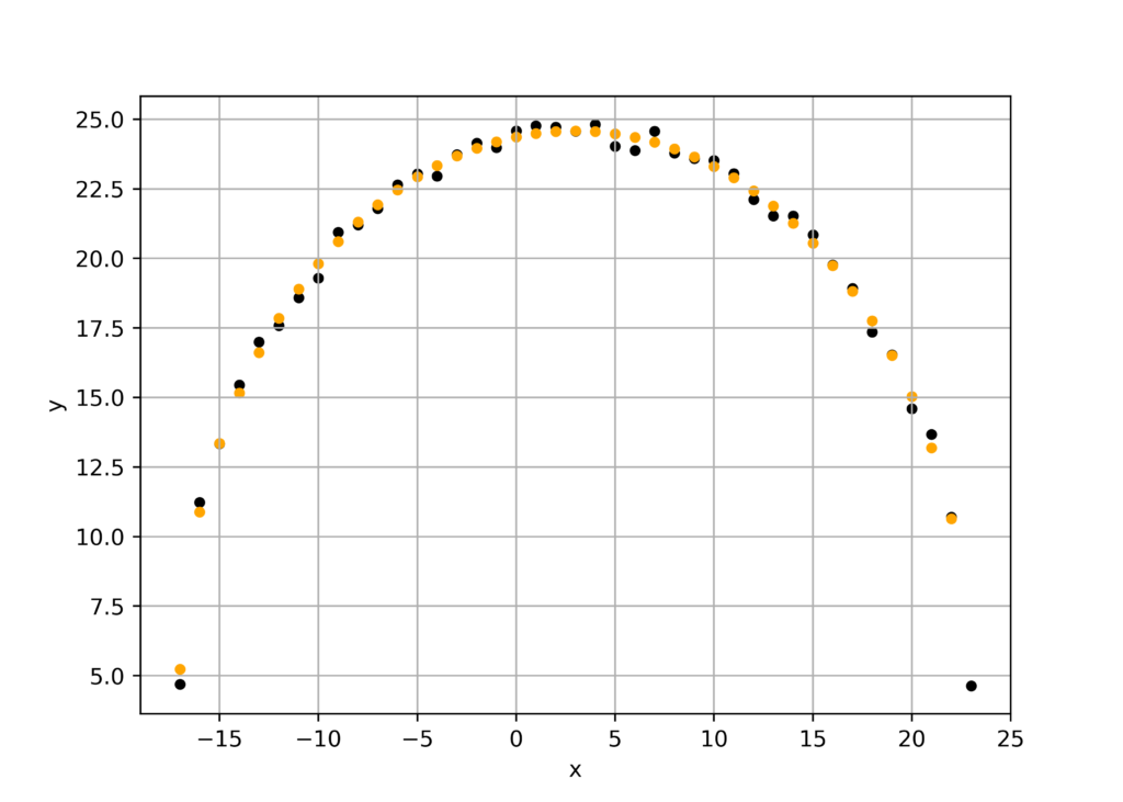 y_p = [np.sqrt(r**2-(i-a)**2)+b +random.random()+11 for i in x]